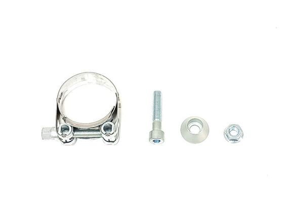 Delivered with the stainless steel fitting adaptable to the original collector. Very nice sound. Excellent price/ quality ratio.