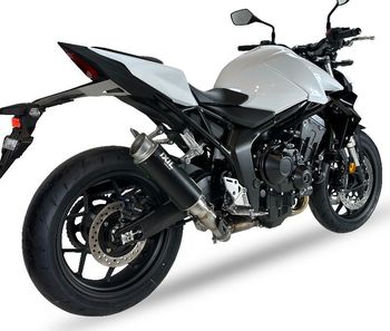 Silencieux GP Design en inox AISI 304 pour une durée de vie rallongée. Grille arrière pare feu, sortie de gaz affinée polie. 2 montages ressorts, Laquage noir mat haute température. Equipé de 1 chicane, Gravage au Laser.